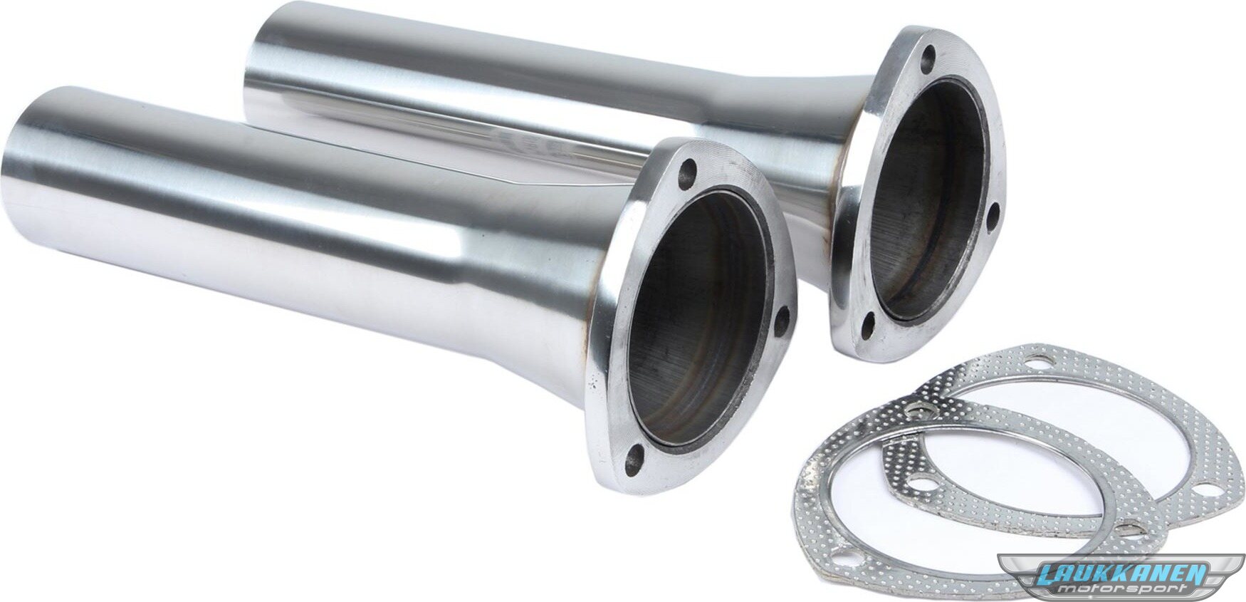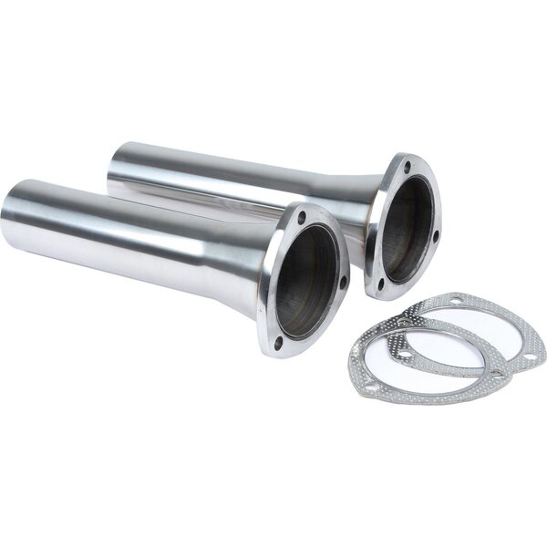 Collector Reducer - 3-1/2 in Inlet to 2-1/2 in OD Outlet - 3-Bolt Flange - 12 in Long - Stainless - Polished - Pair