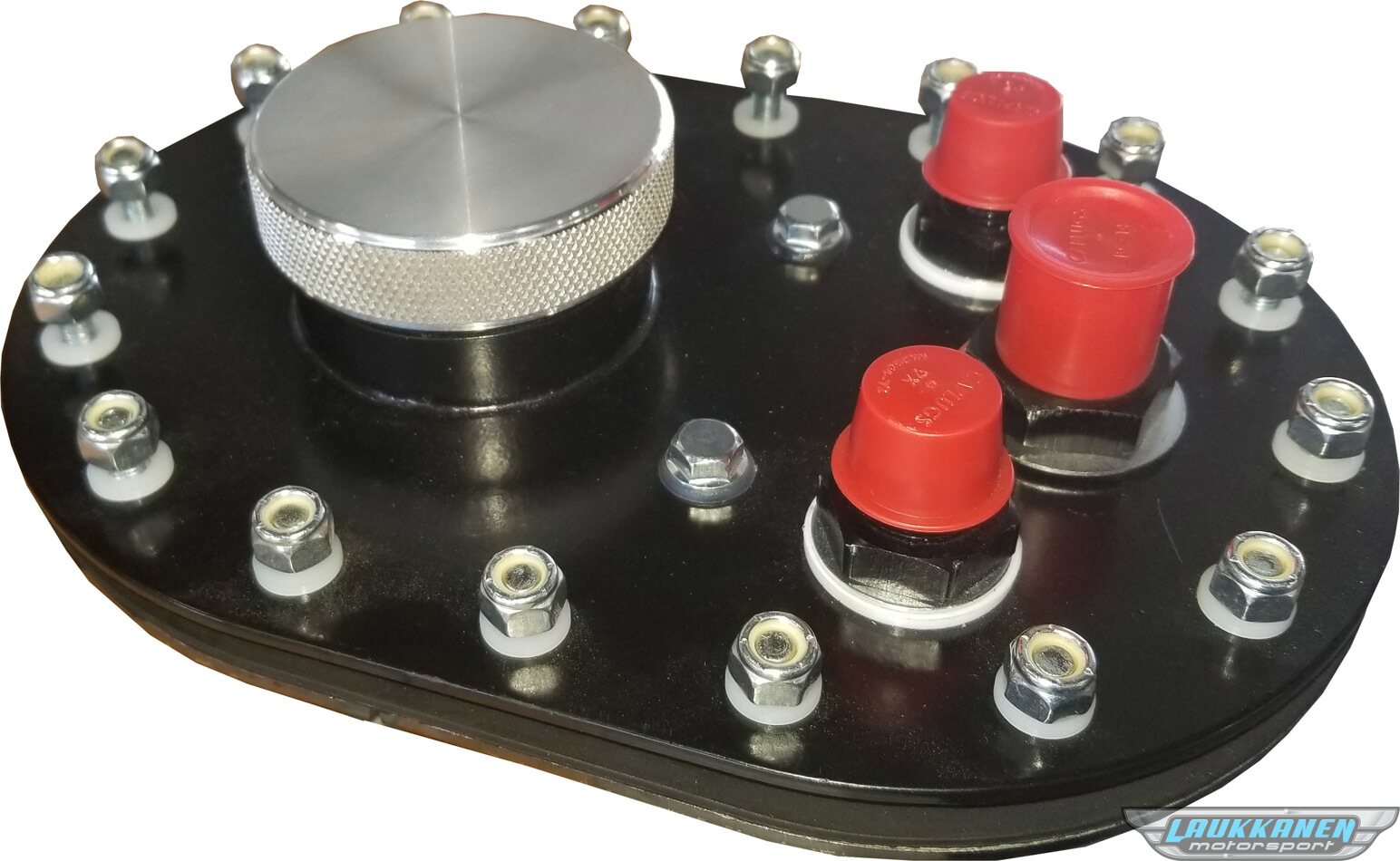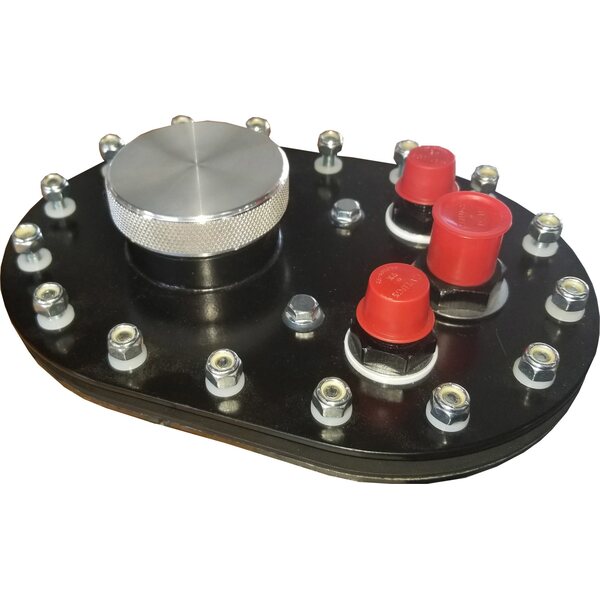 Fuel Cell Filler Plate - Threaded Cap - Flat Mount - 16-Bolt Flange - 10 AN Male Outlet - 8 AN Male Vent - Aluminum - Natural - Kit