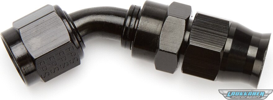 Fitting - Hose End - PTFE Racing Hose - 45 Degree - 6 AN Hose to 6 AN Female Swivel - Aluminum - Black Anodized - Each