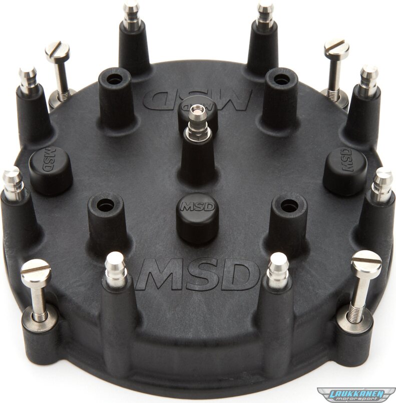 Distributor Cap - Extreme Series - HEI Style Terminals - Brass Terminals - Clamp Down - Black - MSD - Jesel Belt Drive System - Various Applications V8 - Each
