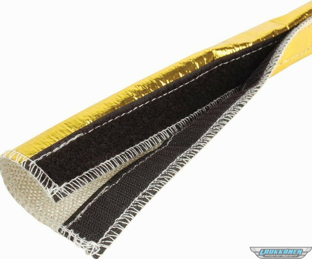 Hose and Wire Sleeve - Heat Shroud - 1/2 in to 1-1/4 in ID - 3 ft - Split - Hook and Loop Closure - Aluminized Fiberglass Fabric - Gold - Each