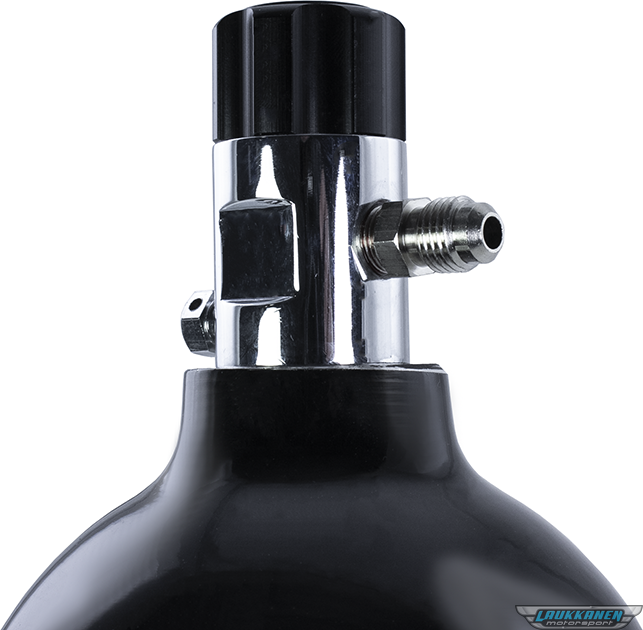 Produkt beskrivelse2.5lb Bottle The 2.5lb bottle is designed to fit in tight spaces and is perfect for powersports applications. The valve has a port for a NHRA blow off valve to meet NHRA regulations.