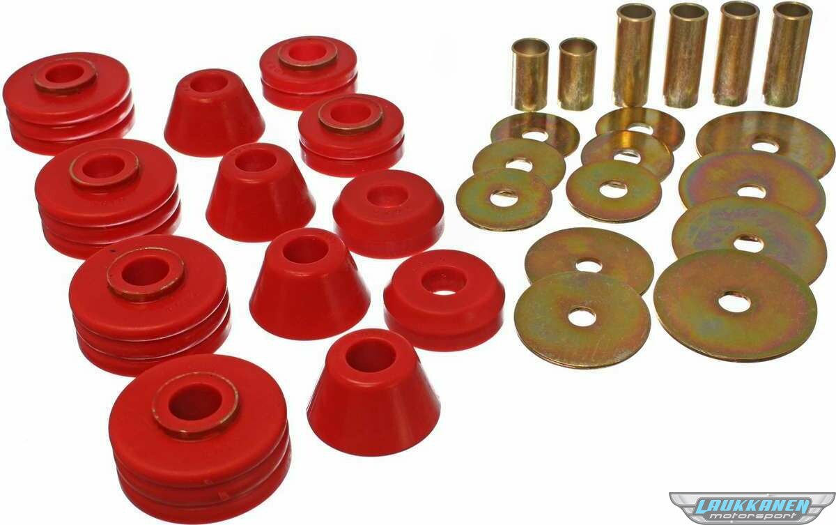 Body Mount Bushing - Hyper-Flex - Polyurethane / Steel - Red / Cadmium - GM Fullsize Truck 1973-80 - Kit