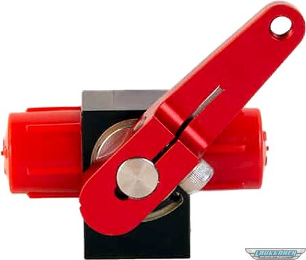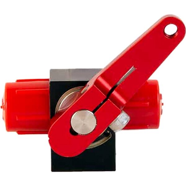 Shutoff Valve - Fuel Shutoff - Manual - 6 AN Male Inlet - 6 AN Male Outlet - Aluminum - Black / Red Anodized - Each