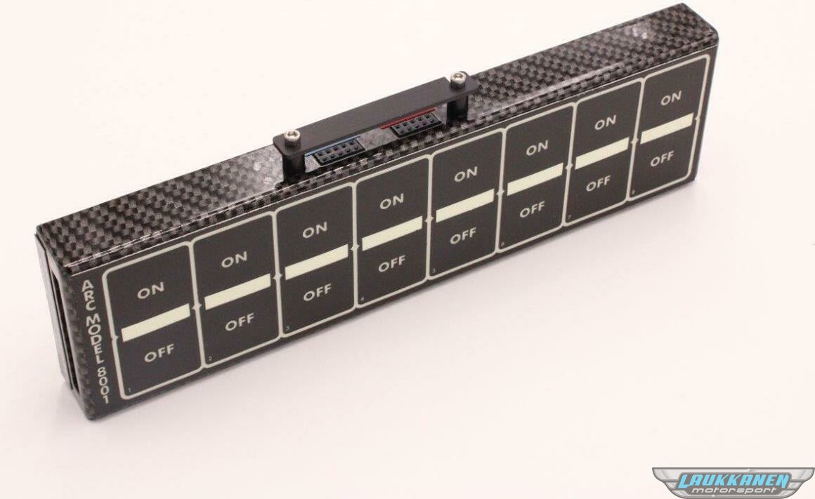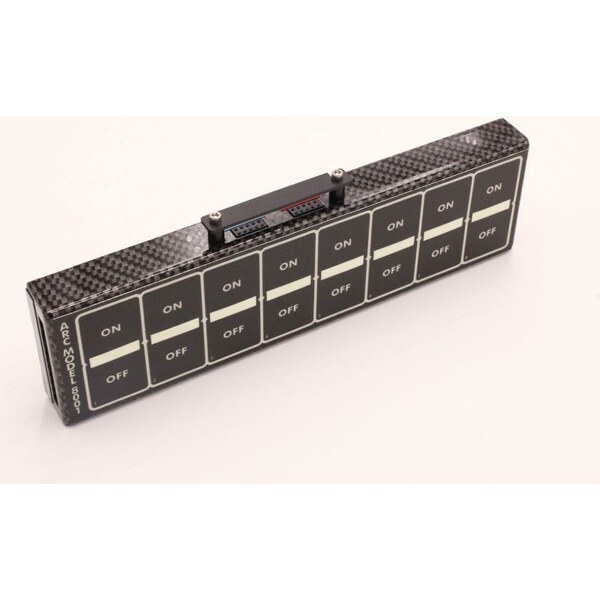 Switch Panel - Model 8004 - Dash Mount - 8-3/4 x 2-3/8 in - 8 Flat Switches - Fused - Indicator Lights - Relay Board / Wiring Included - Carbon Fiber - Kit