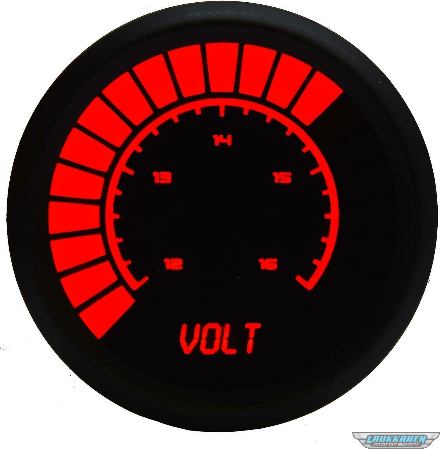 Voltmeter - Bargraph - 12-16V - Electric - Digital - 2-1/16 in Diameter - Black Face - Red LED - Each