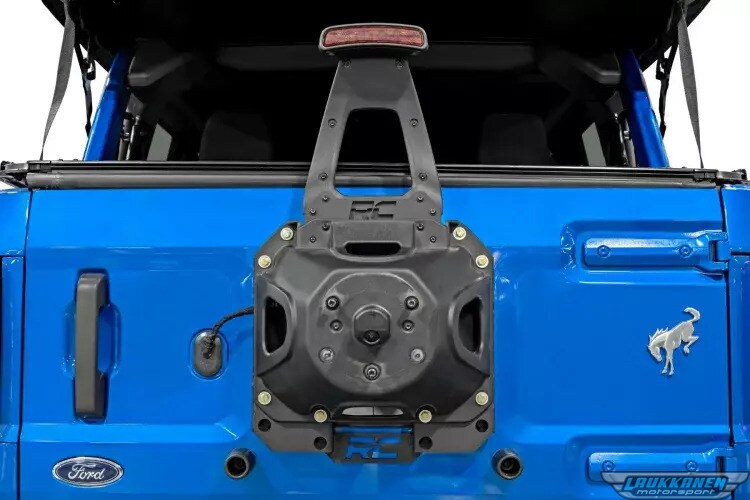 Spare Tire Bracket - Relocation - Bolt-On - Up to 35 in Tire - Hardware / Reinforcement Bracket Included - Steel - Black Powder Coat - Ford Midsize SUV 2021-22 - Kit