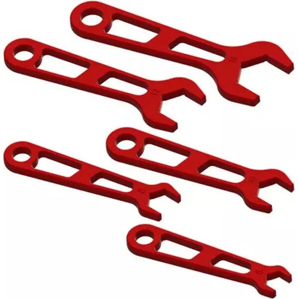 AN Wrench Set - Single End - 5 Piece - 6 AN to 16 AN - Aluminum - Red Anodized - Kit