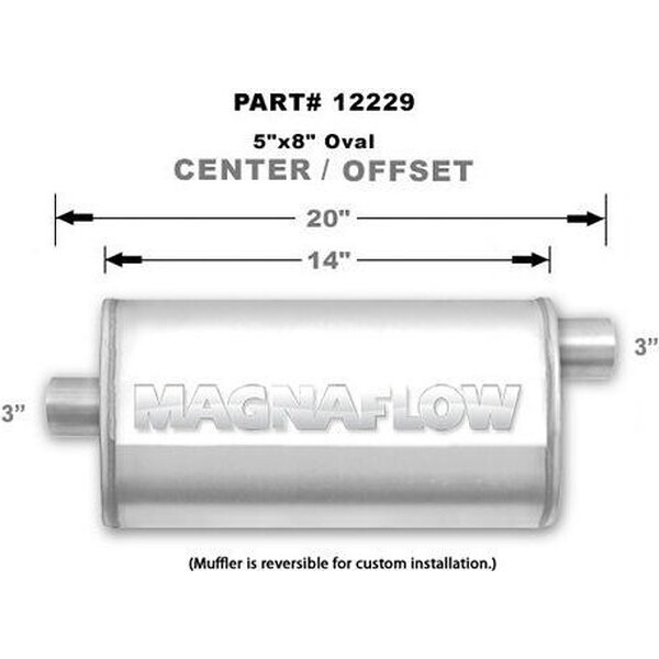 Magnaflow - 12229 - 3 In Center Inlet - 3 In Offset Outlet - 14 X 8 X 5 In Oval Body - 20 In Long