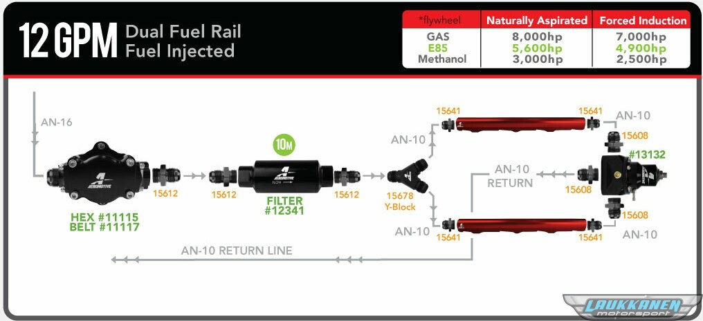 Designed to feed serious EFI and Carbureted engines, gasoline, ethanol or methanol. The 12 Series Belt Drive Pump must be driven by a pulley and cog drive belt allowing the pump to be driven from your crankshaft. It can be used in high or low pressure applications.
