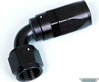 Fitting - Hose End - 90 Degree - 6 AN Hose to 6 AN Female Swivel - Aluminum - Black Anodized - Each