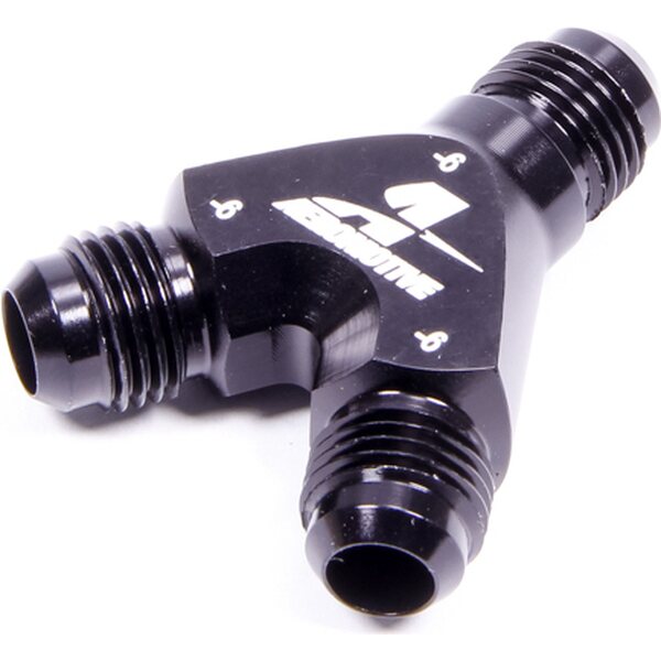 Fitting - Y Block - 6 AN Male Inlet - Dual 6 AN Male Outlets - Aluminum - Black Anodized - Each