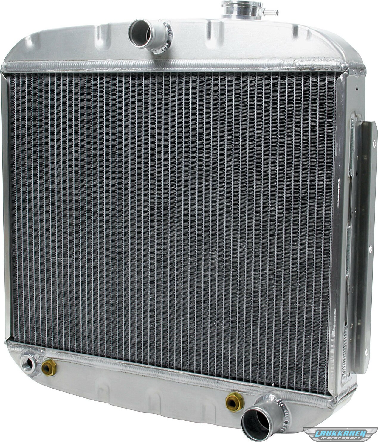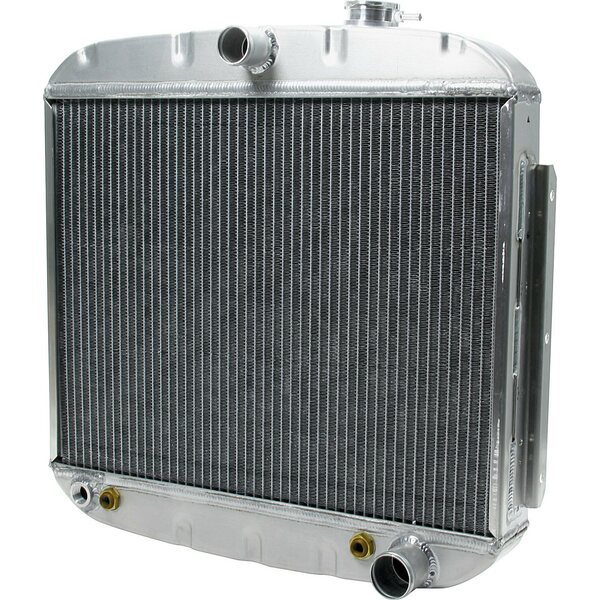 Additional information THIS RADIATOR HAS MOUNTS WELDED-ON FOR APPLICATIONS ORIGINALLY EQUIPPED WITH A V-8 AND A SHORT WATER PUMP. THESE MOUNTS PLACE THE RADIATOR TOWARDS THE BACK OF THE RADIATOR SUPPORT (CLOSER TO THE ENGINE) WHICH MAY CAUSE FAN CLEARANCE PROBLEMS. USE ALL30005 FOR V-8'S WITH LONG WATER PUMPS. OVERALL SIZE IS 23.25 X 23.25 (including the filler neck) CORE WIDTH IS 22 1/4 NPT Transmission Line Fittings 1/2 NPT Heater Hose Fitting 1-1/2 Inlet(upper), 1-3/4 Outlet(lower)