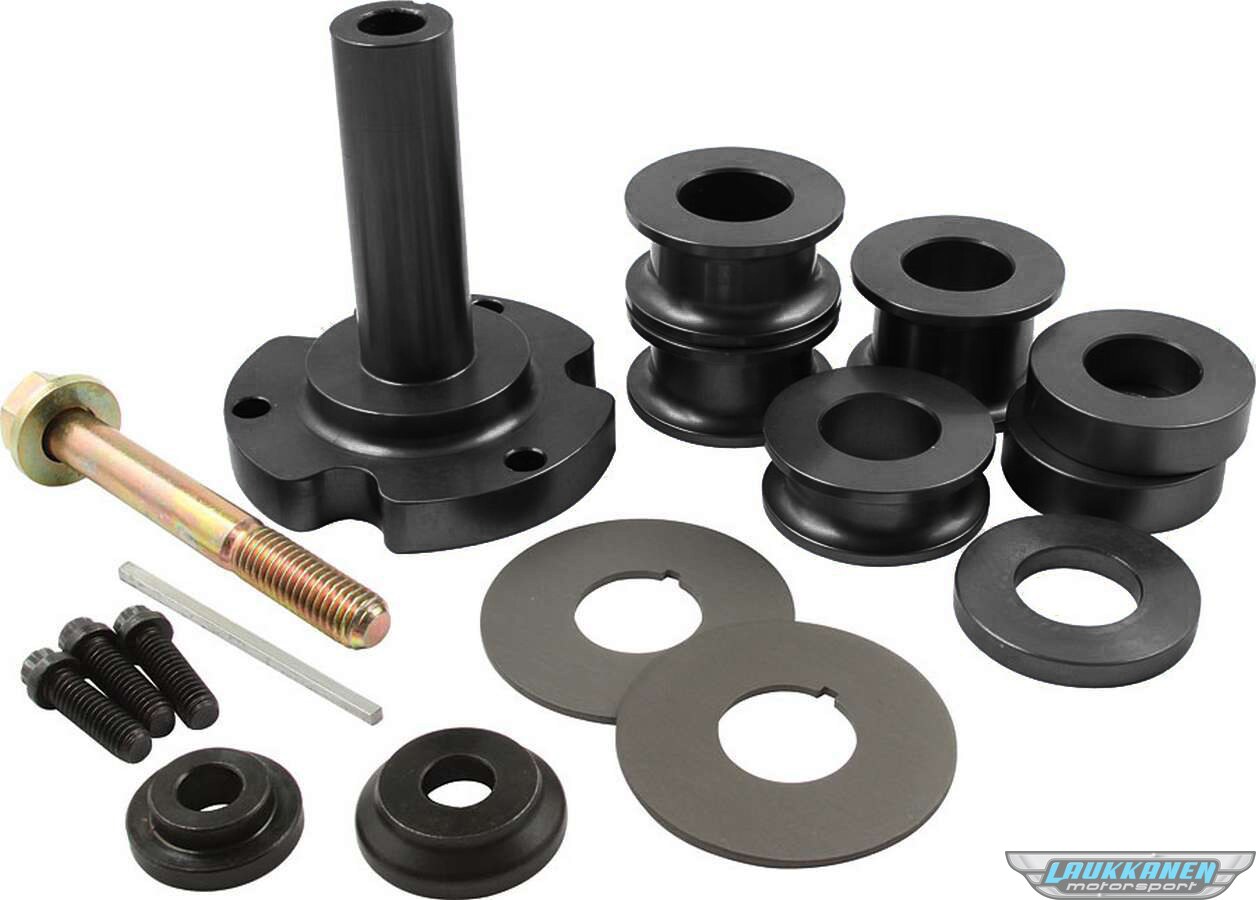 Additional information THIS KIT MUST BE USED WITH ALL 31030 CRANK PULLEY. THE MANDREL BOLTS TO THE PULLEY, NOT DIRECTLY TO THE CRANK. This kit contains: 1-Mandrel 2-Pulley Guides 1-Bolt Kit(Three bolts) 1-Stepped Washer 1-End Washer 1-Mandrel Bolt with flat washer 1-Mandrel key 1-Mandrel Spacer 1.25 2-Mandrel Spacers 1 1-Mandrel Spacer .750 2-Mandrel Spacers .500 1-Mandrel Spacer .250