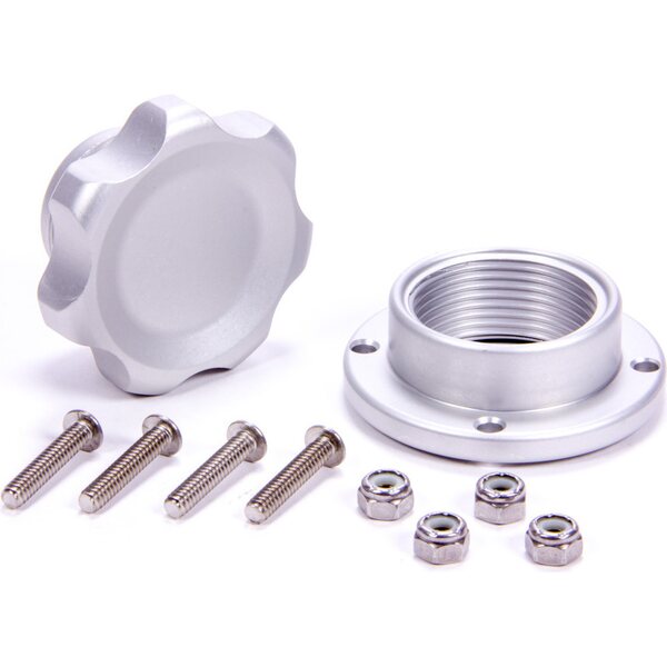 Bung and Cap Kit - 1.375 in OD - Bolt-On - Aluminum Bung - Aluminum Threaded Cap - Silver Anodized - Kit