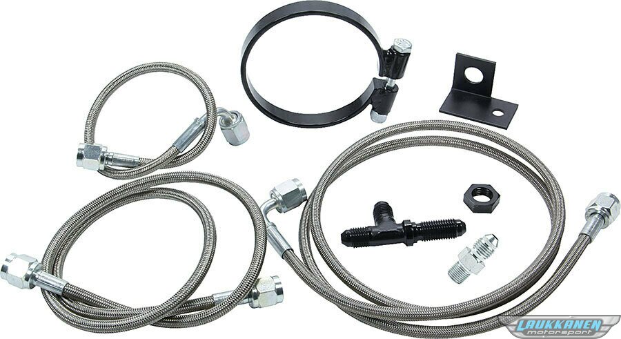 Brake Line Kit - Rear - 3 AN Hose - 4 AN Ends - Fittings / Installation Hardware - Braided Stainless - Natural - AM Calipers - Dirt Late Model - Kit