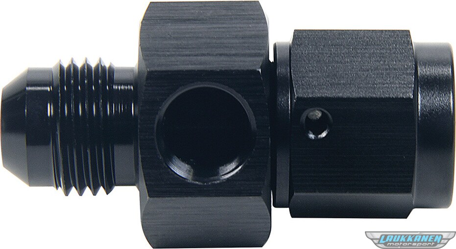 Fitting - Gauge Adapter - Straight - 6 AN Male to 6 AN Female - 1/8 in NPT Gauge Port - Aluminum - Black Anodized - Each