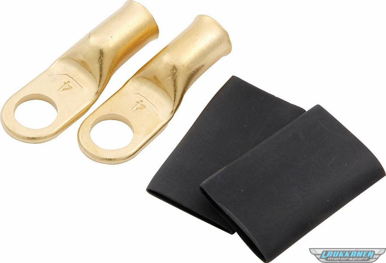 Battery Terminal - 4 Gauge - 5/16 in Eyelet - Shrink Sleeve - Brass - Gold Plated - Pair