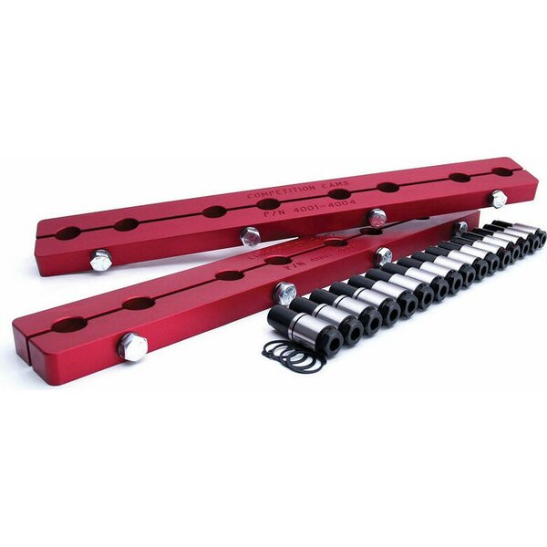 Rocker Arm Stud Girdle - 3/8-24 in Thread Studs - Aluminum - Red Anodized - Small Block Chevy - Kit