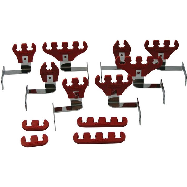 Spark Plug Wire Loom - Valve Cover Mount - 7-9 mm - Red / Chrome - Big Block Chevy - Kit
