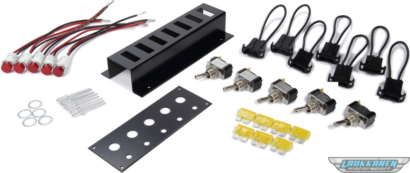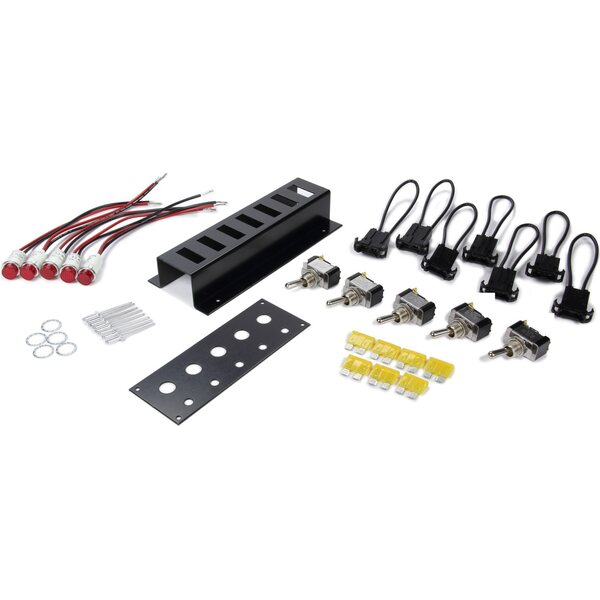 Switch Panel - Dash Mount - 5-1/2 x 2 in - 5 Toggles - Fused - Indicator Lights - Black - Kit