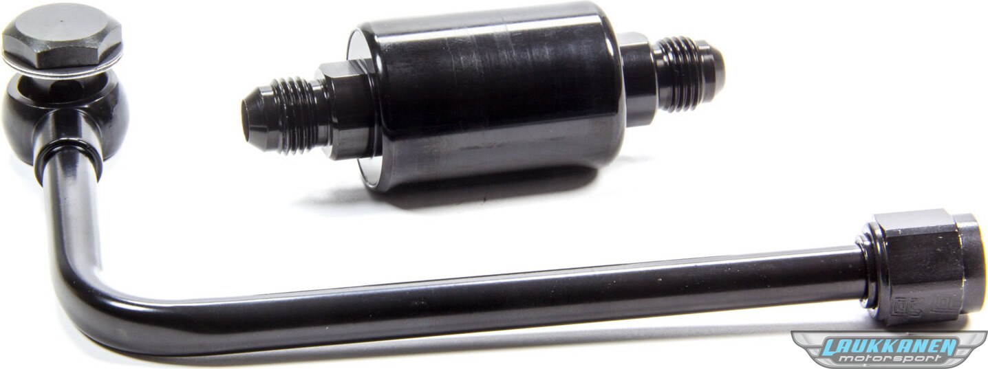 Carburetor Fuel Line - 6 AN Male Inlet - 5/8-20 in Outlet - Polished Filter - Stainless - Black - Edelbrock Performer / Thunder AVS Carburetors - Kit