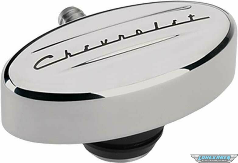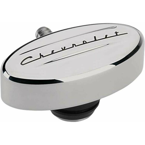 Breather - Push-In - Oval - 1-1/4 in Hole - PCV - 3/8 in Hose Evacuation Fitting - Chevrolet Logo - Billet Aluminum - Polished - Each