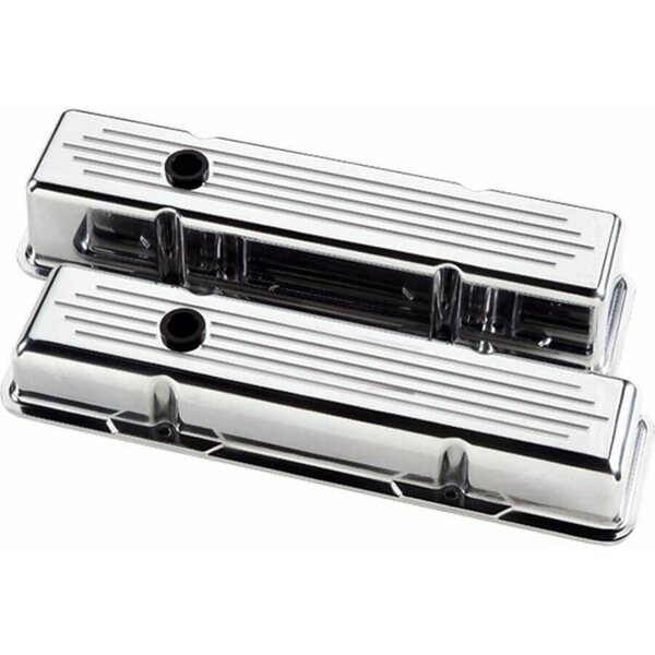 Valve Cover - Stock Height - Baffled - Breather Hole - Grommets - Billet Aluminum - Polished - Small Block Chevy - Pair