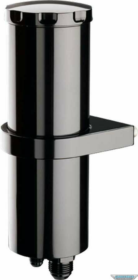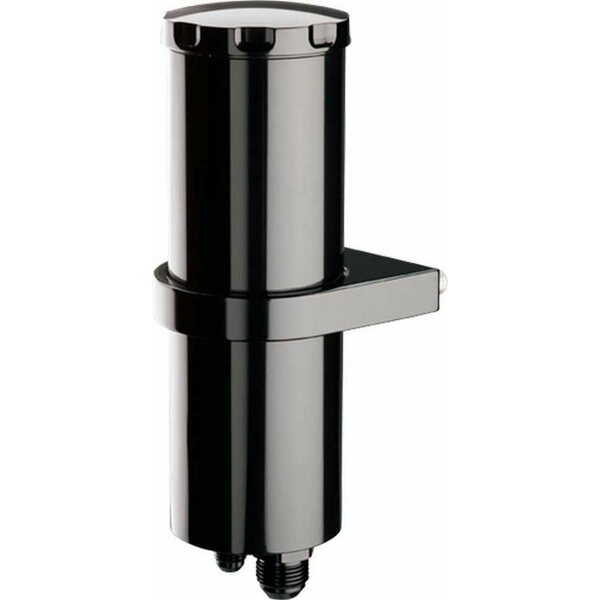 Power Steering Reservoir - 1/2 qt - 8-3/4 in Tall x 2-7/8 in Diameter - 6 AN Male Inlet - 10 AN Male Outlet - Billet Aluminum - Black Anodized - Each