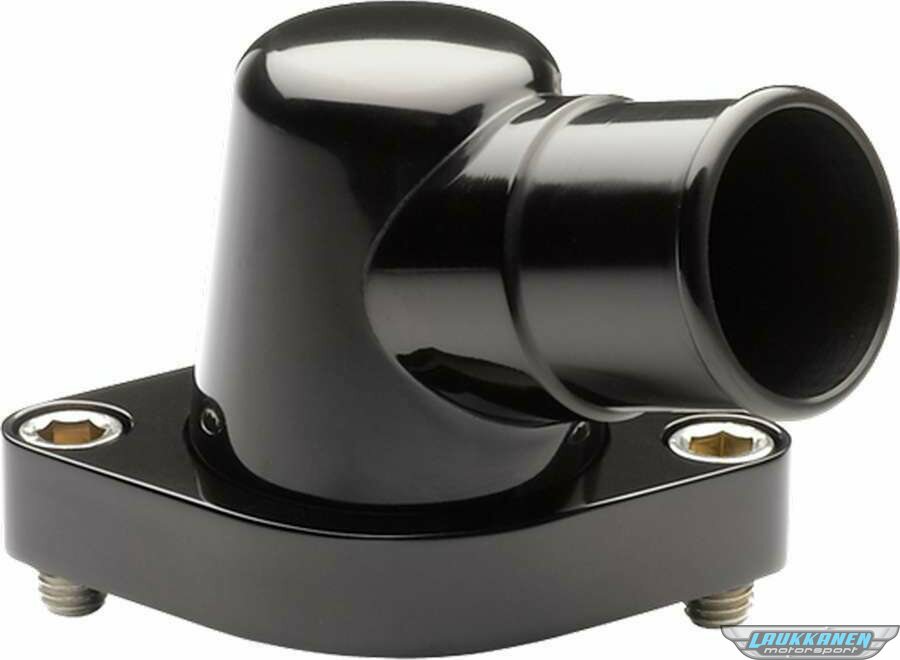 Water Neck - 75 Degree - 1-1/2 in ID Hose - Swivel - O-Ring - Stainless Hardware - Billet Aluminum - Black Anodized - Chevy V8 - Each