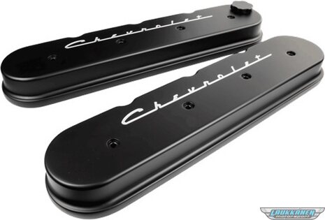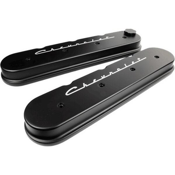 Valve Cover - Stock Height - Fill Cap / Gaskets / Hardware Included - Chevrolet Script - Aluminum - Black Powder Coat - GM LS-Series - Pair