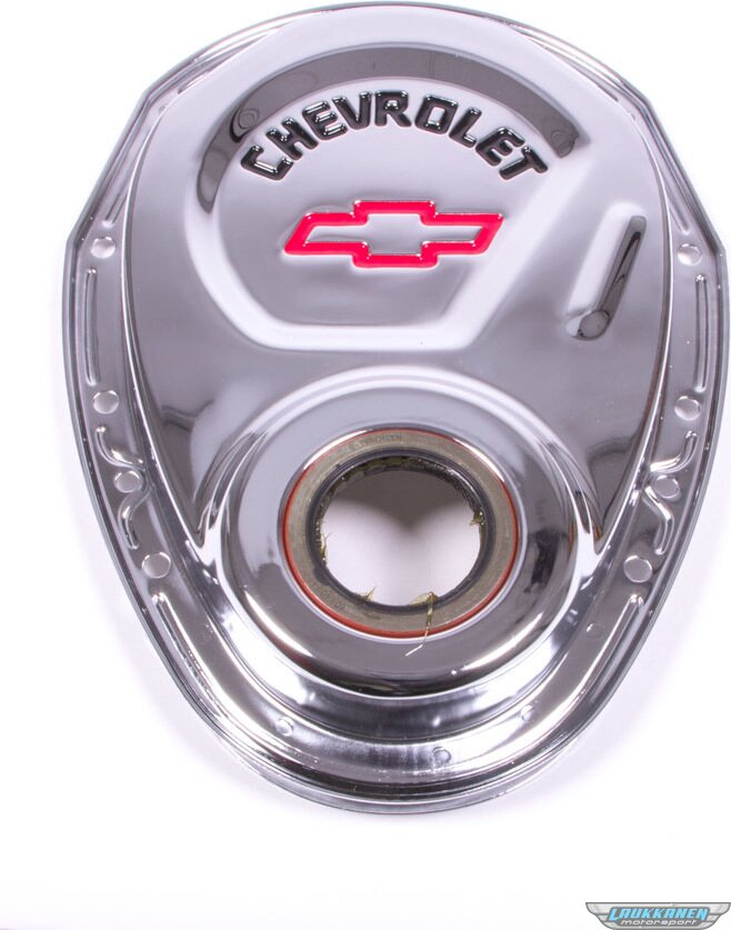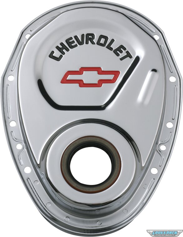 This engine timing chain cover is manufactured from high quality steel material. Features a great looking finish. Designed to fit 1969 to 1991 Small Block Chevy engines. Front crankshaft oil seal is included. This is an officially licensed Chevrolet Performance Parts product. Sold individually.