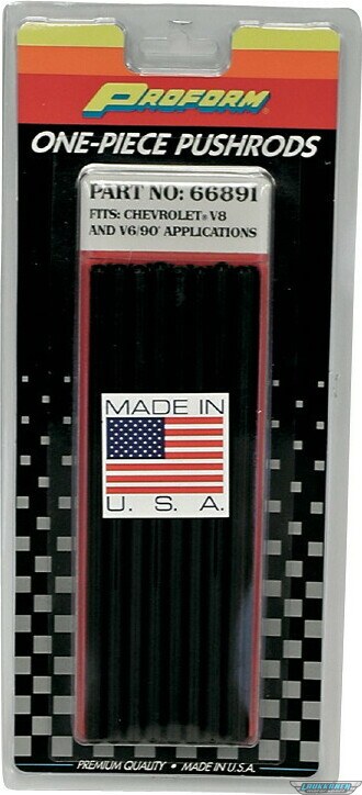 1-Piece Pushrod Set - Heat-treated .065 wall thickness 4130 chrome moly, for use with guide plates. 25 percent thicker walls than a major competitor brand. Gloss black finish. Premium one-piece pushrods for the price of competitors 3-piece! Each end is precision formed with specified radius for optimum wear characteristics with minimal metal-to-metal friction. 16 pieces per package.