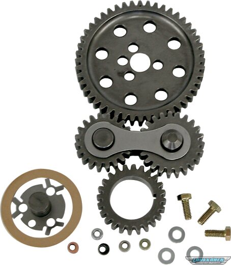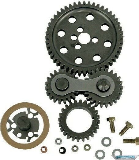 For Chevrolet applications. These rugged gear drives offer high-precision timing, eliminating chain stretch. Machined for noise. Easy to install, fits under stock timing covers. Includes locking plate, offset cam bushings, roller cam bearing, and bronze thrust bearing. Sold as a kit.