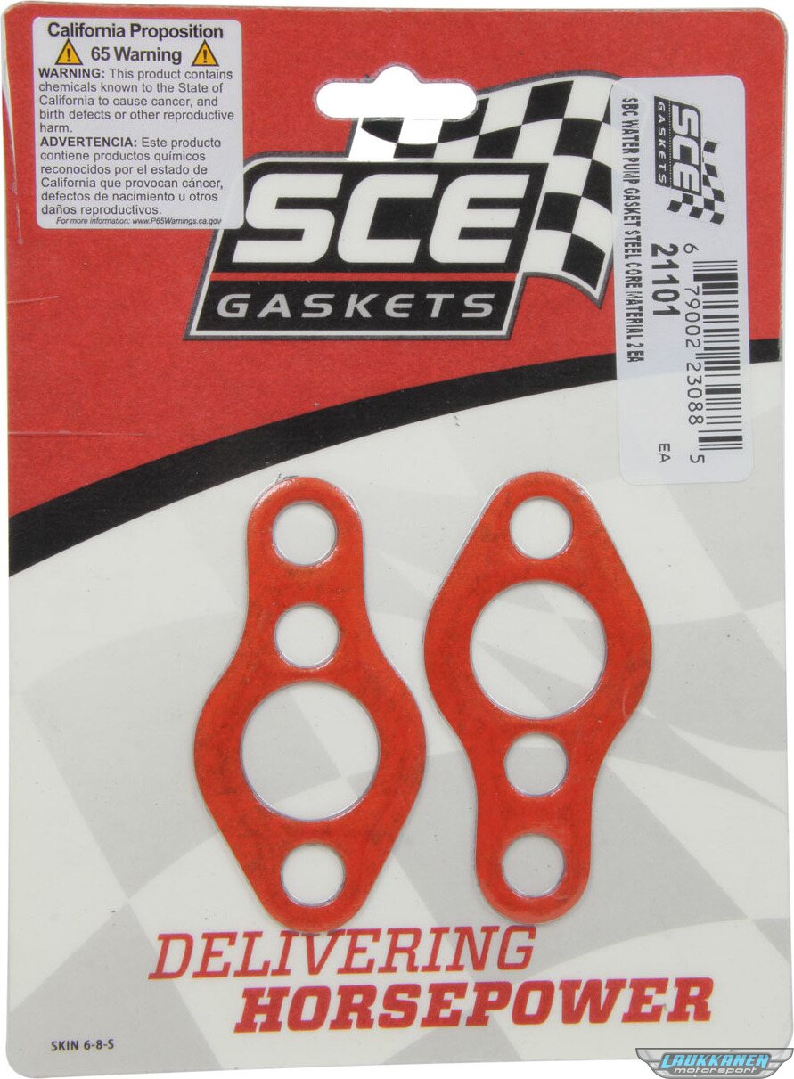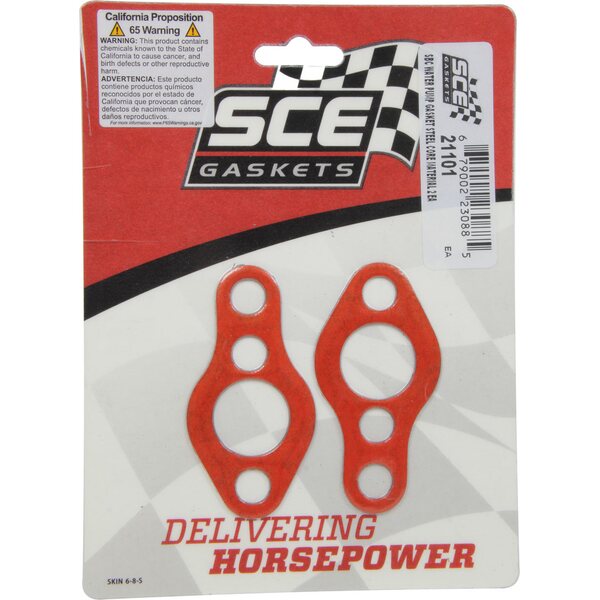 SCE Gaskets - 21101 - Sbc Water Pump Gasket Set W/Steel Carrier 2Pk