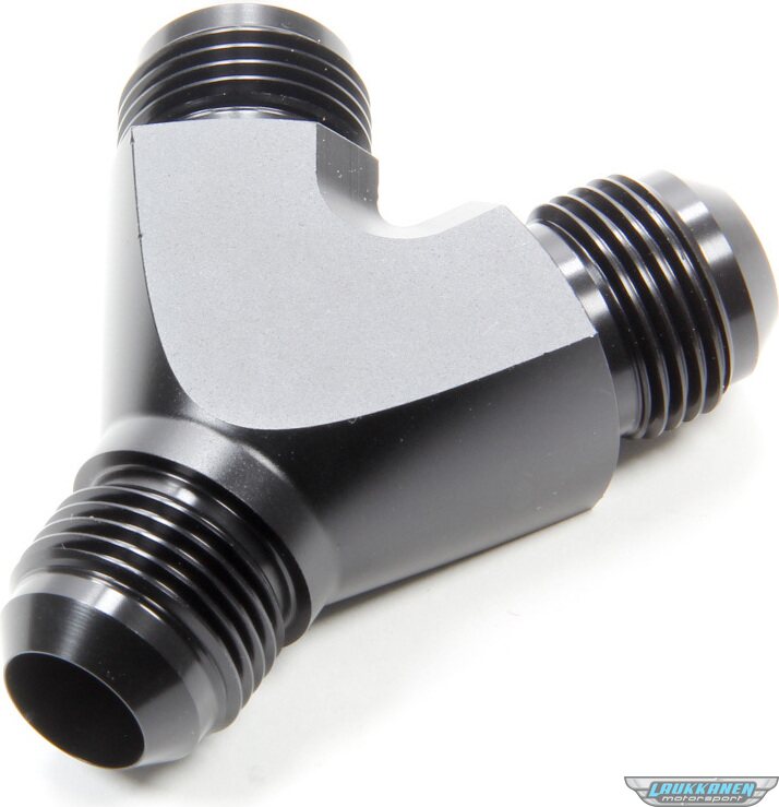 Fitting - Y Block - 10 AN Male Inlet - Dual 10 AN Male Outlets - Aluminum - Black Anodized - Each