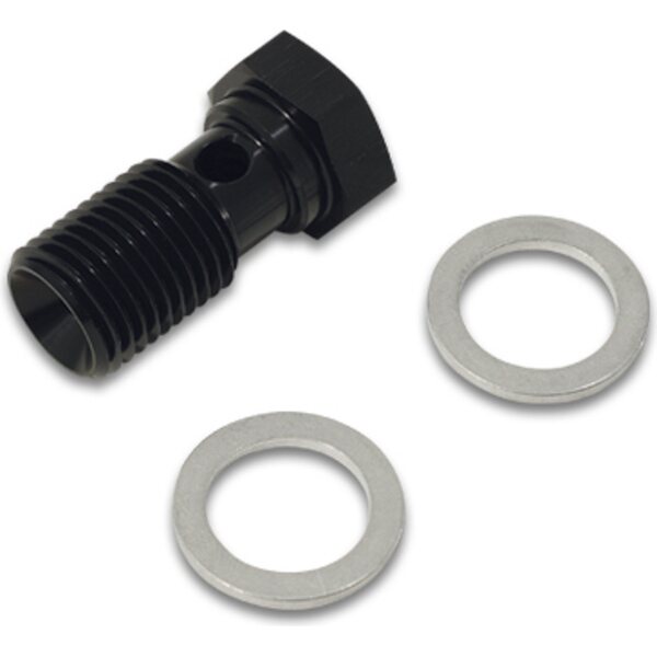 Banjo Bolt - Single Banjo - 12 mm x 1.250 Thread - 20 mm Length - Washers Included - Aluminum - Black Anodized - Pair