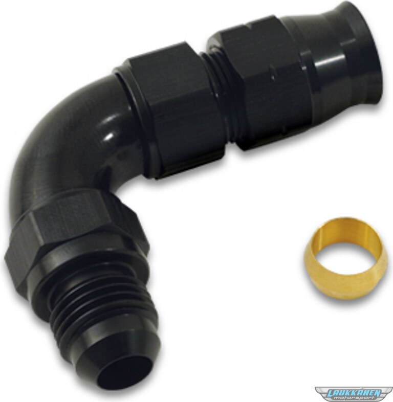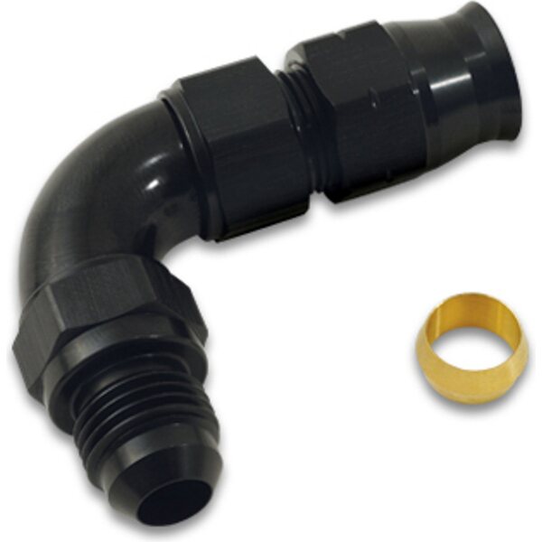 Fitting - Tube End - 90 Degree - 6 AN Male to 5/16 in Tubing - Compression Ferrule Included - Aluminum - Black Anodized - Each