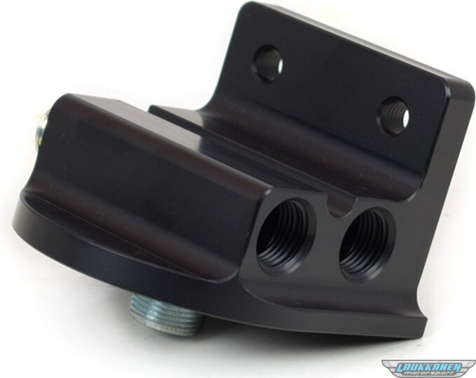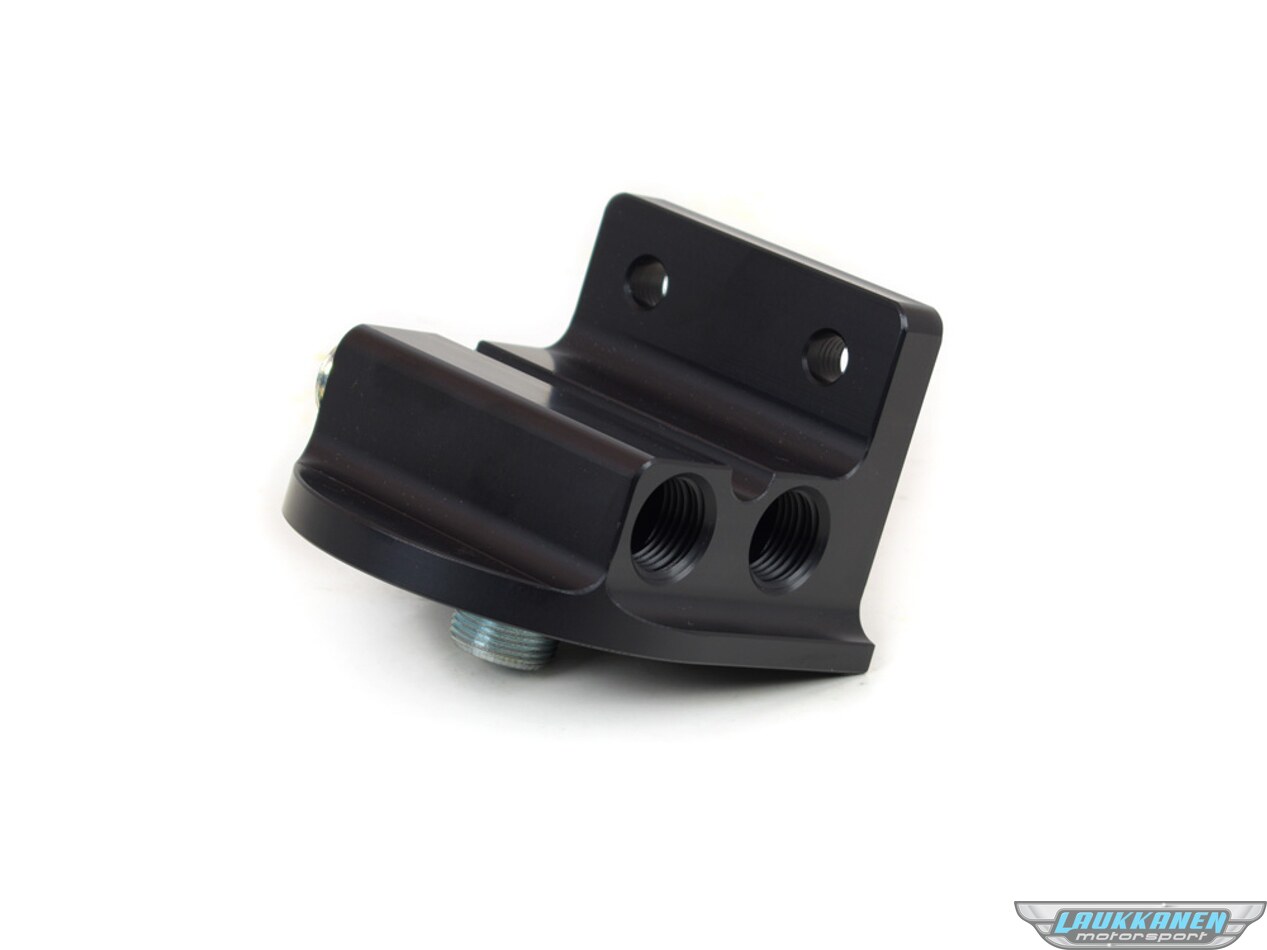Oil Filter Mount - Four 1/2 in NPT Female Ports - 22 mm Center Thread - Billet Aluminum - Black Anodized - Universal - Each