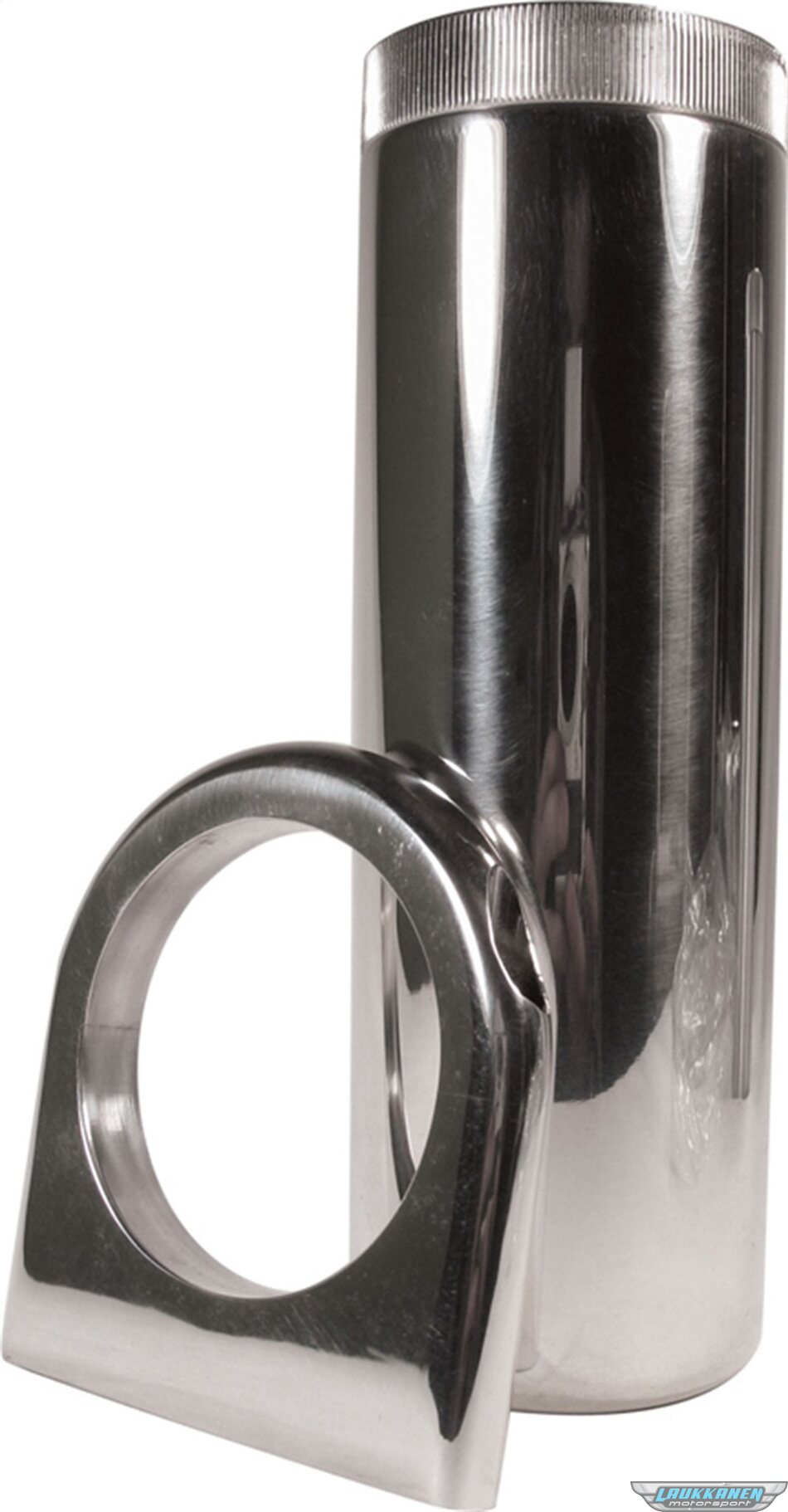 Power Steering Reservoir - 7 in Tall x 2-1/2 in OD - 3/8 in NPT Male Inlet - 5/8 in NPT Male Outlet - Bracket / Cap - Aluminum - Polished - Each