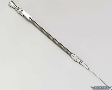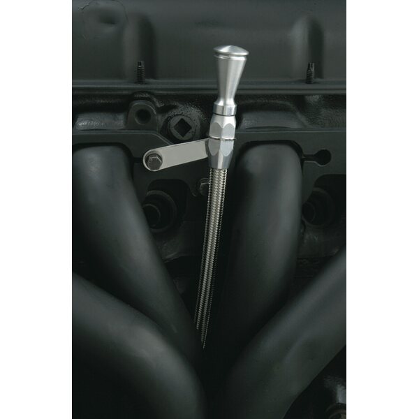 Engine Oil Dipstick - Pan Mount - Braided Stainless Housing - Aluminum - Clear Anodized - Big Block Chevy - Each