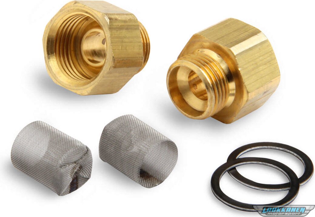Carburetor Inlet Fitting - Straight - 9/16-24 in Male to 5/8-18 in Inverted Flare Female - Brass - Natural - Demon Carburetors - Pair