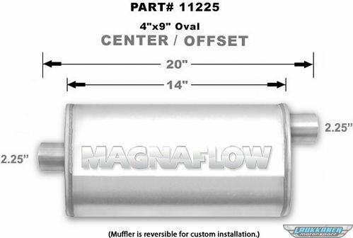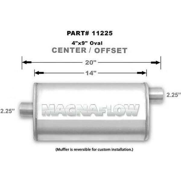 Muffler - 2-1/4 in Offset Inlet - 2-1/4 in Center Outlet - 14 x 9 x 4 in Oval Body - 20 in Long - Stainless - Natural - Universal - Each