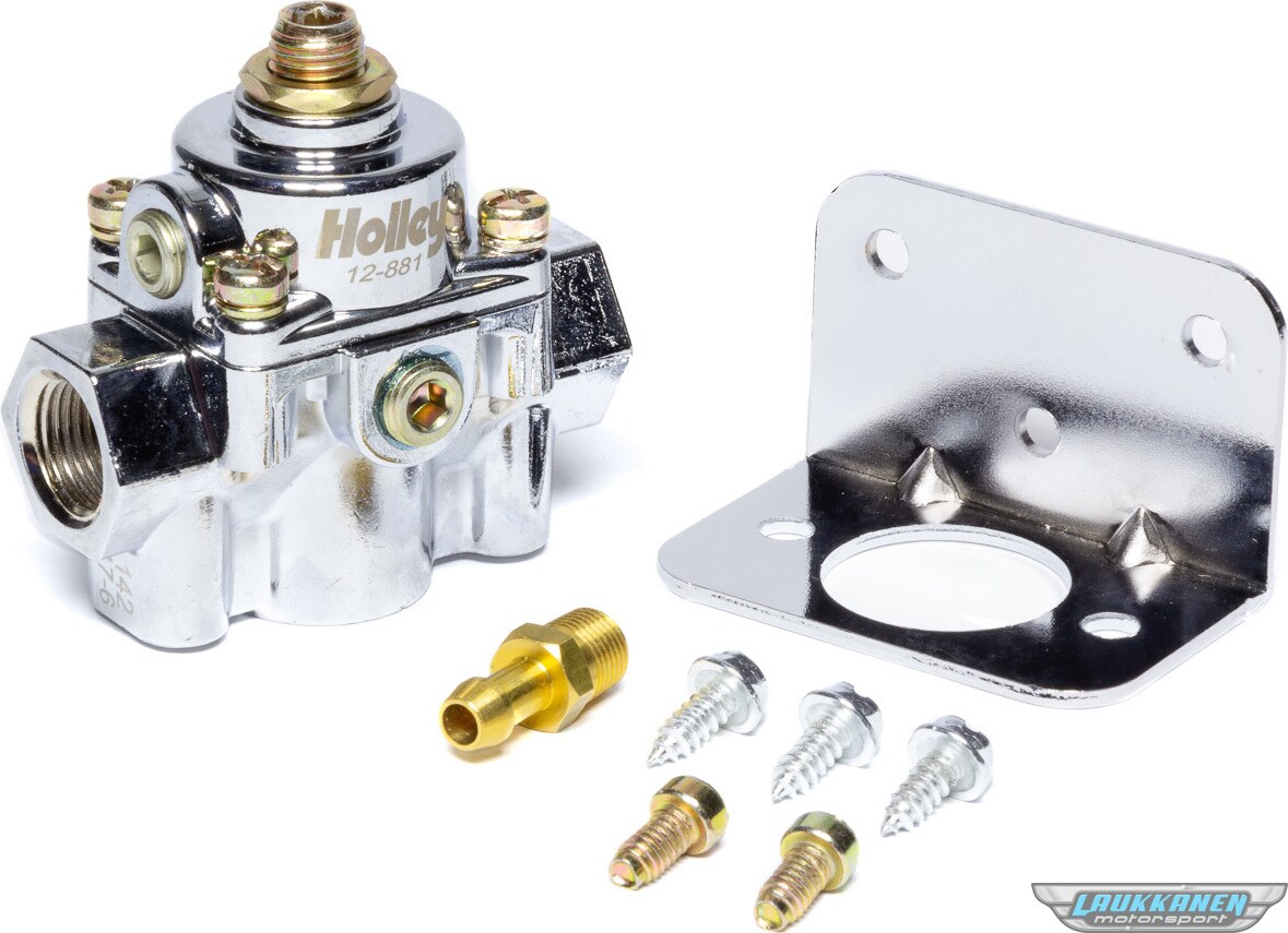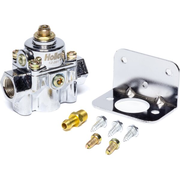 Fuel Pressure Regulator - Die Cast - 4-1/2 to 9 psi - In-Line - 3/8 in NPT Inlet - 3/8 in NPT Outlet - 3/8 in Return - 1/8 in NPT Gauge Port - Bypass - Aluminum - Chrome - Gas - Each