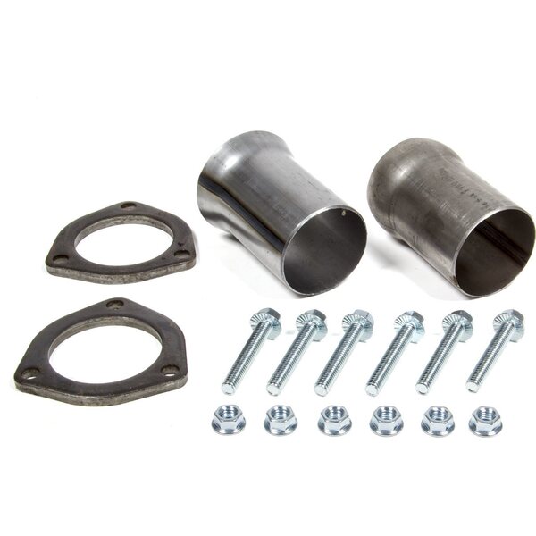 Collector Reducer - 2-1/2 in Inlet to 2-1/2 in OD Outlet - 3-Bolt Ball and Socket Flange - Hardware Included - Steel - Natural - Pair