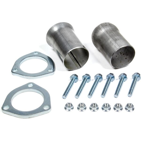 Collector Reducer - 2-1/2 in Inlet to 2-1/2 in OD Outlet - 3-Bolt Ball and Socket Flange - Hardware Included - Steel - Aluminized - Pair