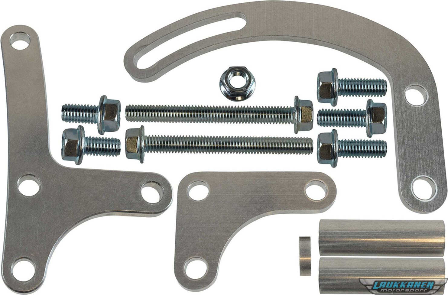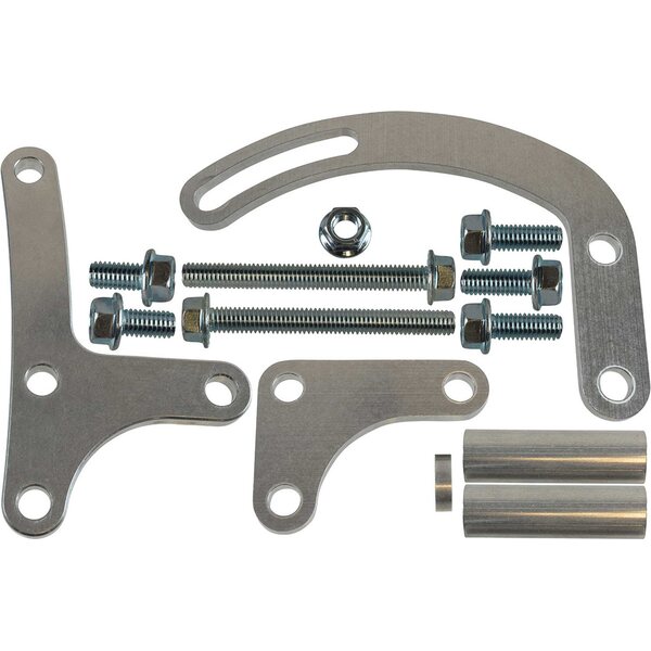 Power Steering Pump Bracket - Driver Side - Block Mount - Aluminum - Natural - Electric Water Pump - Small Block Chevy - Kit