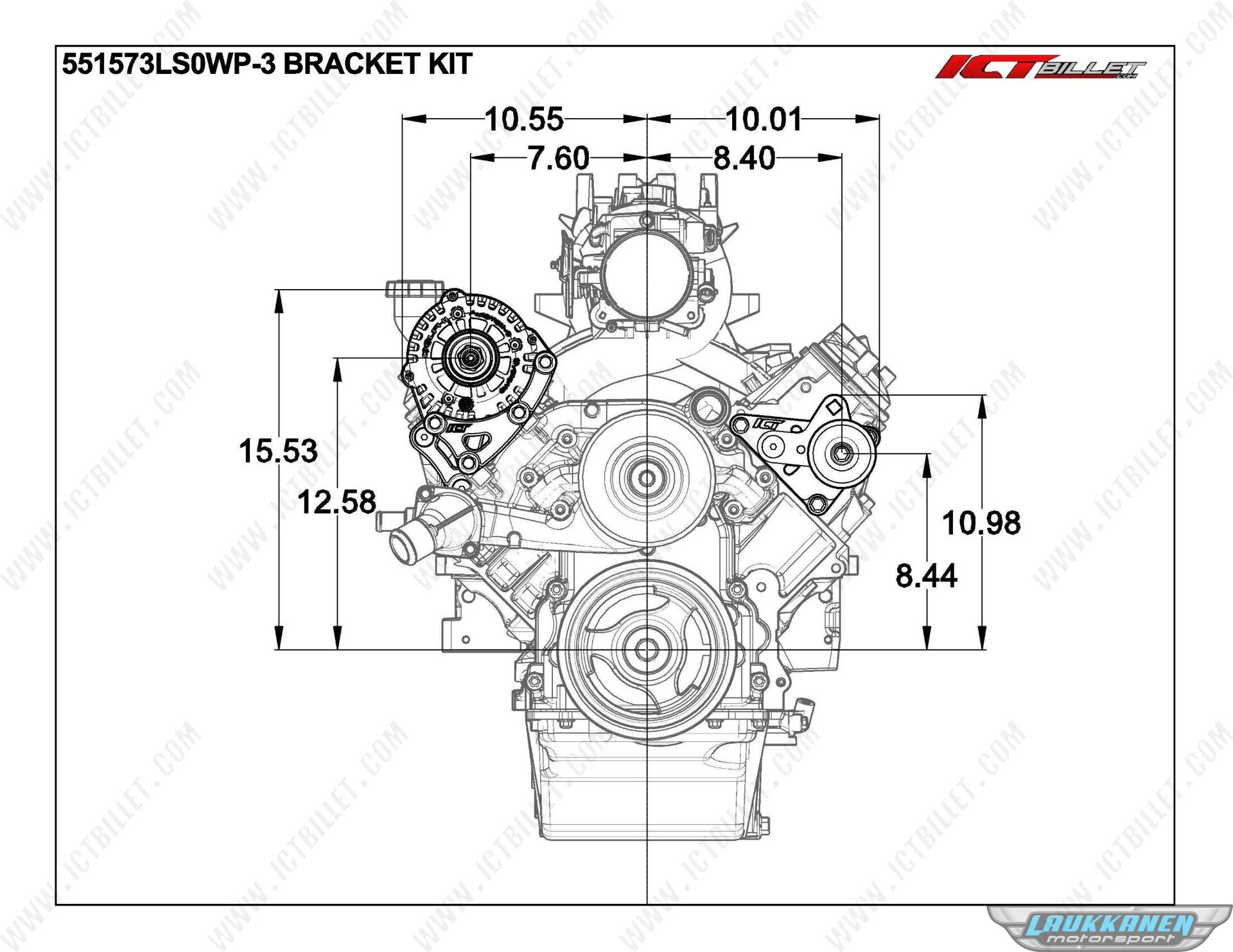 ICT Billet - 551573LS0WP-3 - Truck Turbo Alternator Bracket Kit