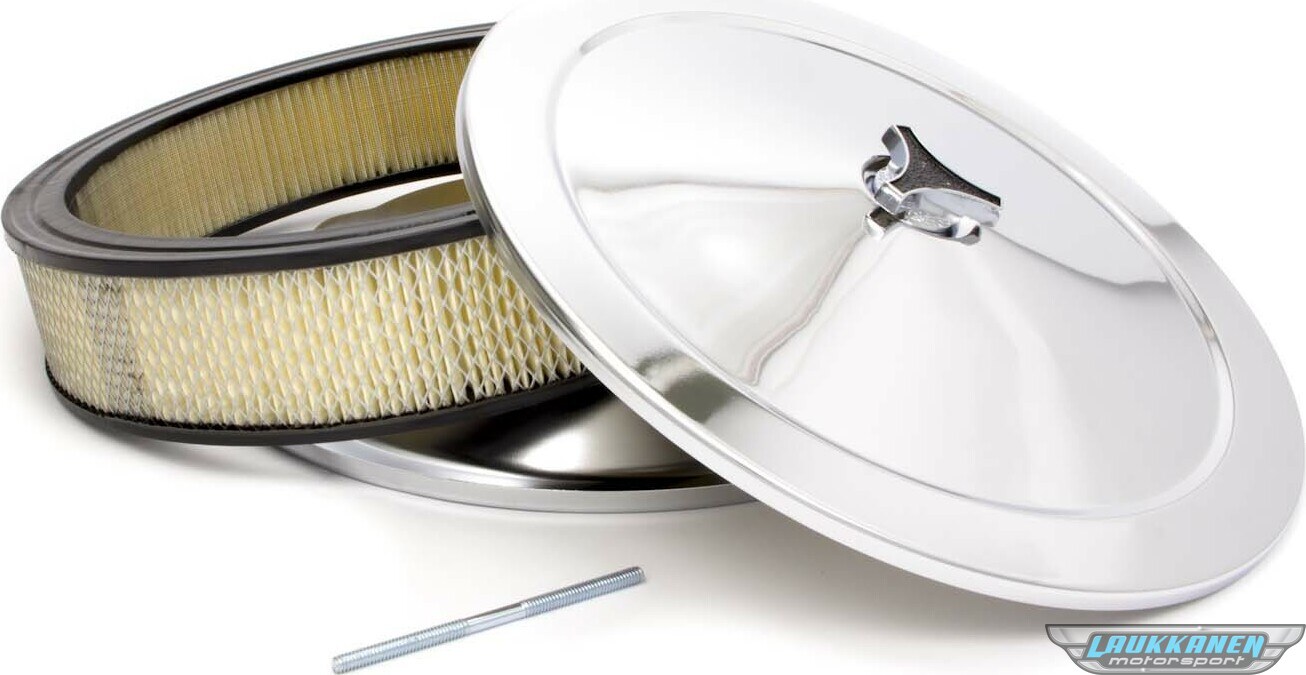 Air Cleaner Assembly - Muscle Car - 14 in Round - 3 in Element - 5-1/8 in Carb Flange - Drop Base - Steel - Chrome - Kit