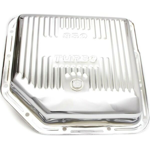Transmission Pan - Stock Depth - Finned - Steel - Chrome - TH350 - Each